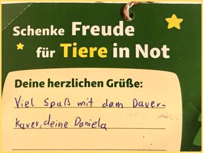 Wir danken Euch allen die den Tieren ein Geschenk gemacht haben und uns damit eine riesen Freude !