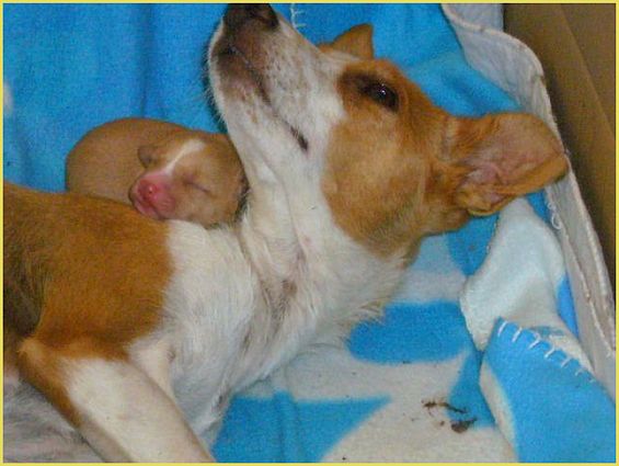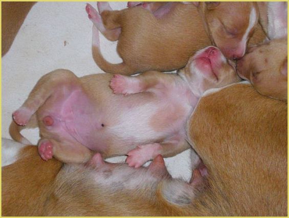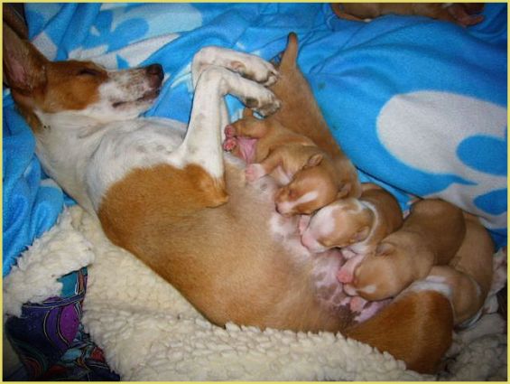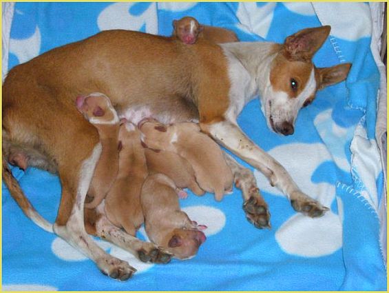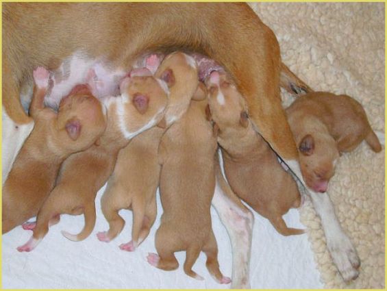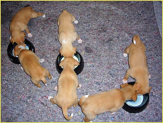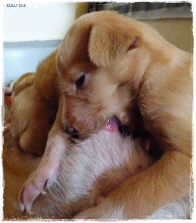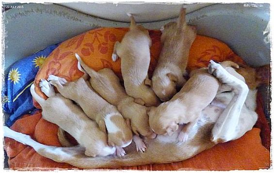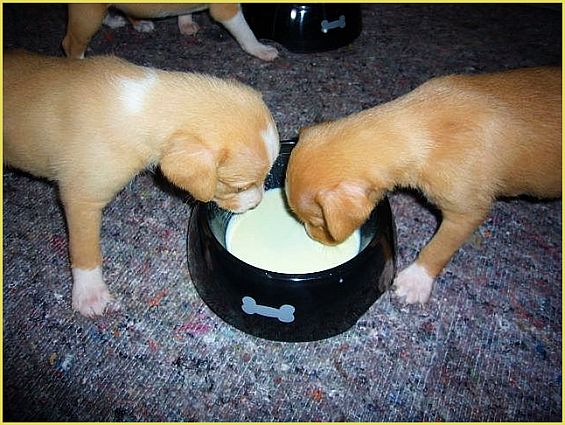 Mama mag nicht mehr soviel hinhalten, es gibt die erste Welpenmilch zugefüttert