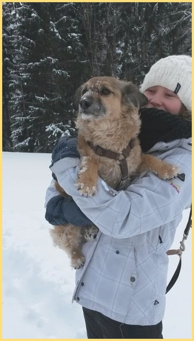 Bei uns zeigt er inzwischen Lebensfreude, spielt gerne und geniesst die Spaziergänge. Er lebt richtig auf und lernt nun die schönen Seiten des Lebens kennen. Er ist verträglich mit anderen Hunden. Ausser den Momenten in denen er seine aggressiven Ausfälle hat, da verliert er für einen Moment die Kontrolle. Wir arbeiten daran und finden langsam heraus wodurch sie ausgelöst werden und wie wir ihn schnellstmöglichst wieder beruhigen können. Er hat einen starken Tic - leckt den Menschen unaufhörlich die Füsse ab........