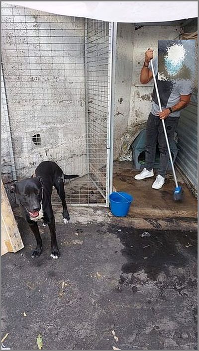 Er kommt jeden Tag um seine Hunde zu besuchen, putzt die Zwinger, füttert die Hunde und kümmert sich um sie.