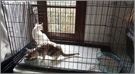 nur in der Ecke des Käfigs sitzt. Die Beiden brauchen noch viel Zeit und finden hoffentlich auch noch eine Familie.