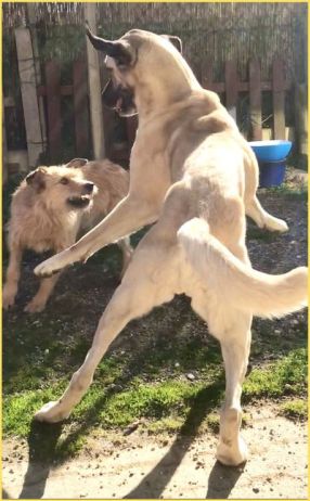 - mit grossem Respekt vor dem Kangal-Wesen - habe ich mich vorbereitet und mich beraten lassen von Conny Pagel, Herdenschutzhund erfahren und die perfekte Ansprechperson für mich. Die richtige Dosis von Wissen, Erfahrung, Liebe und Humor damit waren Conny und ich sofort auf derselben Wellenlänge und wie sich zeigte, Mali auch :-) Denn Kangal typisch fordert Mali mich mit spielerischem Kräftemessen täglich heraus um zu prüfen ob ich ihr auch gewachsen bin :-) Mali macht das was für sie sinnvoll erscheint, mit unnötigen Kommandos gibt sie sich gar nicht ab und ignoriert gelassen was sie nicht hören will. So bin ich gar nicht erst in Versuchung ihr irgendetwas abzuverlangen oder beizubringen was eigentlich unwichtig ist, was ich ehrlich gesagt sehr entlastend finde :-)) Das Zusammenleben mit Hund bekommt eine neue Bedeutung - denn diese Hunde sind befähigt alleine zurecht zu kommen, auf ihre "Schäfchen" aufzupassen, sie zu verteidigen, sich selbst zu ernähren und allen Witterungen stand zu halten. Selbständig Entscheidungen zu treffen, Lösungen zu finden und ums Überleben zu kämpfen. Dieser Instinkt ist das Einzige was ich keinen Moment vergessen darf: Ressourcen verteidigen gehört zu ihrem Wesen ! Wenn ich das im Zusammenleben beachte gibt es keine Probleme damit.