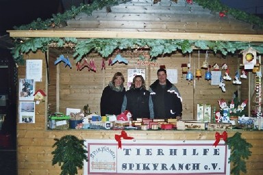Wir waren vom 1.-3. Dez. 06 mit einem Stand am Weiler Weihnachtsmarkt dabei und verkauften selbstgemachte Gebrauchs-und Geschenkartikel vorwiegend aus Holz (die wir in nächtelanger Arbeit hergestellt/bearbeitet/verziert hatten), Tiffany Glastechnik und 4 Sorten selbstgebackene Hunde-Leckerli aus gesunden Zutaten. Wir waren sehr aufgeregt da wir nicht sicher waren was den Menschen gefallen wird, ob wir von allen  Artikeln genug haben und wie alles ablaufen wird.